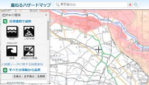 東京都北区周辺の洪水や浸水なども、マップでチェックができます。
